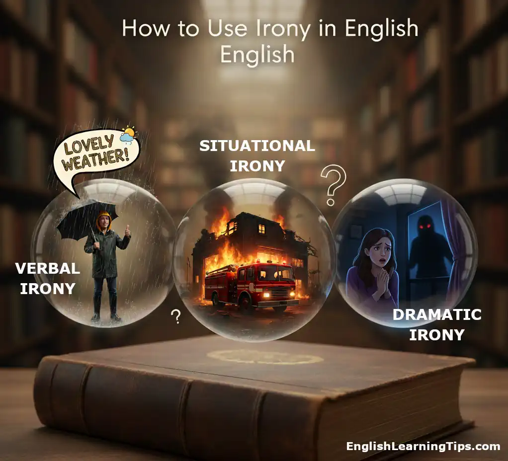 Irony adds sharpness, humor, and depth to communication. English speakers rely on it often in conversation, writing, and literature to express the opposite of what is literally said or expected. Mastering the different types of irony helps you sound more natural, witty, and insightful—whether you are chatting with friends, crafting dialogue, or analyzing stories.